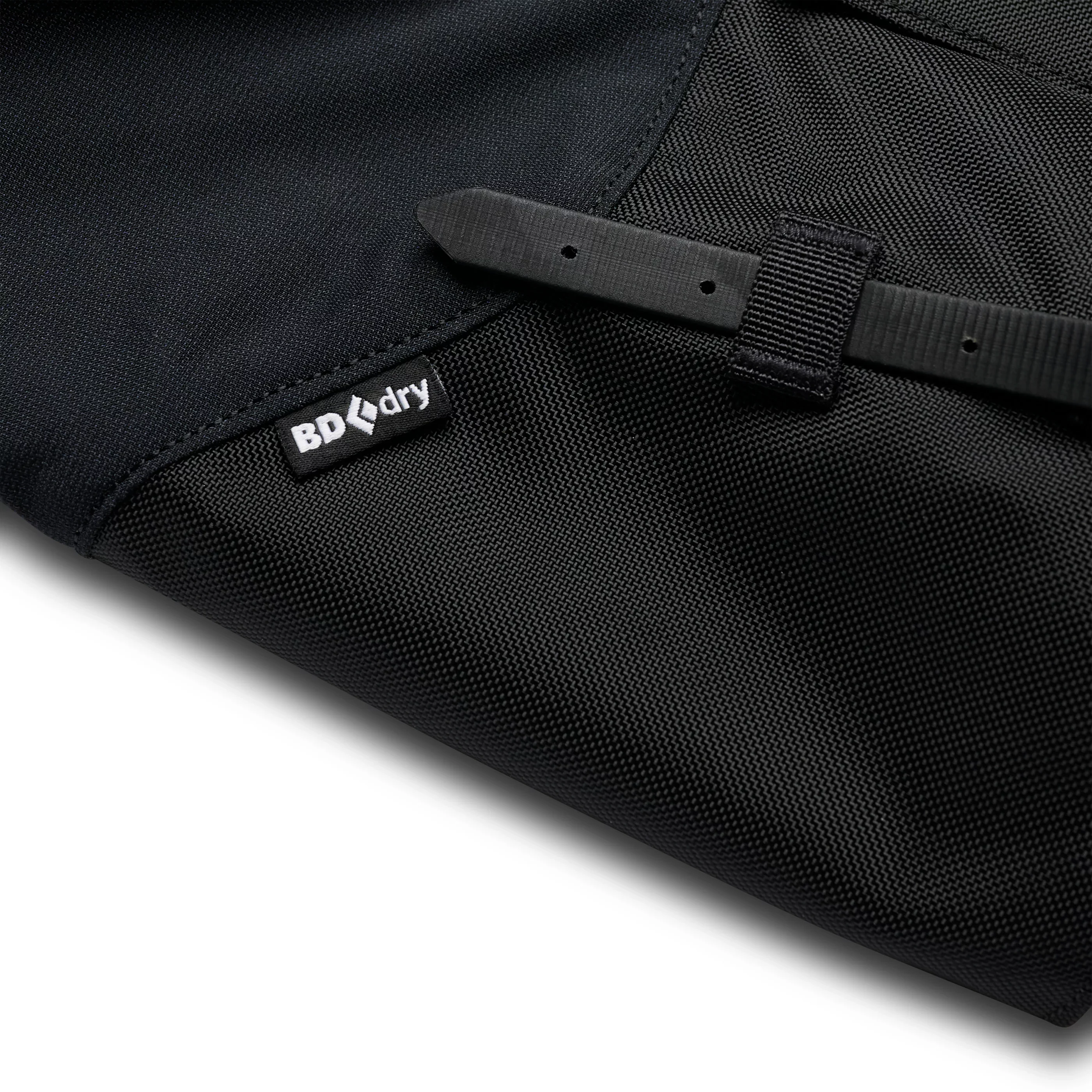 Adjustable closure system with front zipper and Velcro storm flap.